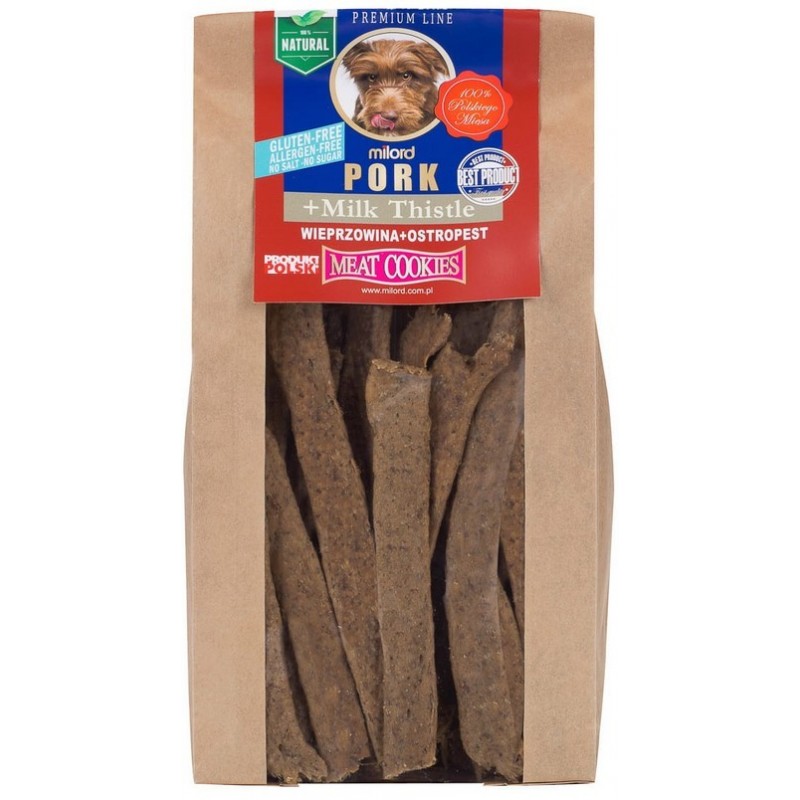 Wybierając MILORD Meat Cookies z Wieprzowiną i Ostropestem, dostarczasz swojemu psu nie tylko smakowitą przekąskę, ale również wsparcie zdrowia. Ten produkt przyczynia się do lepszej kondycji wątroby i ogólnego samopoczucia Twojego pupila.