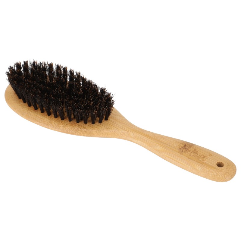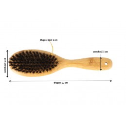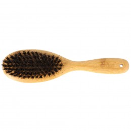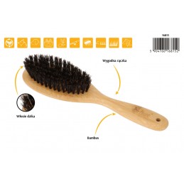 Wykonana z naturalnego, ekologicznego włókna bambusowego szczotka, posiada włosie z dzika o długości 2cm, które dzięki swojej długości głębiej wchodzi w szatę. Świetnie nadaje się do czyszczenia i nabłyszczania krótkiej sierści, jednocześnie usuwając martwy włos oraz przy pielęgnacji długiej i jedwabistej szaty. Końcówki nylonowych pręcików, zostały delikatnie zaokrąglone, co chroni skórę pupila przed podrażnieniami i zadrapaniami. Bambusowa rączka zapobiega elektryzowaniu się włosów podczas szczotkowania. Główną jej zaletą jest wytrzymałość, dzięki czemu właściciel będzie mógł cieszyć się nią długie lata.To narzędzie do pielęgnacji zostało zaprojektowane z myślą o bezpiecznej i delikatnej pielęgnacji Twojego psa lub kota.