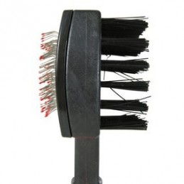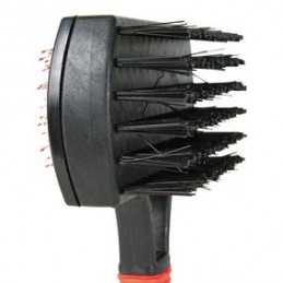 1. Jedna strona szczotki to miękki nylonowy włos, który wygładza sierść i czyści ją z kurzu.