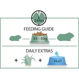 Codziennie podawać ok. 35–50 g karmy (w zależności od wielkości i rasy świnki morskiej).
