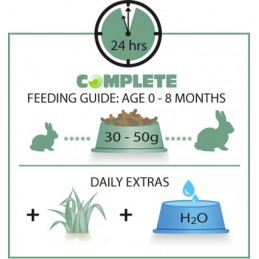 Codziennie podawać ok. 30–50 g karmy (w zależności od wielkości i rasy królika)