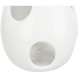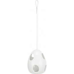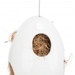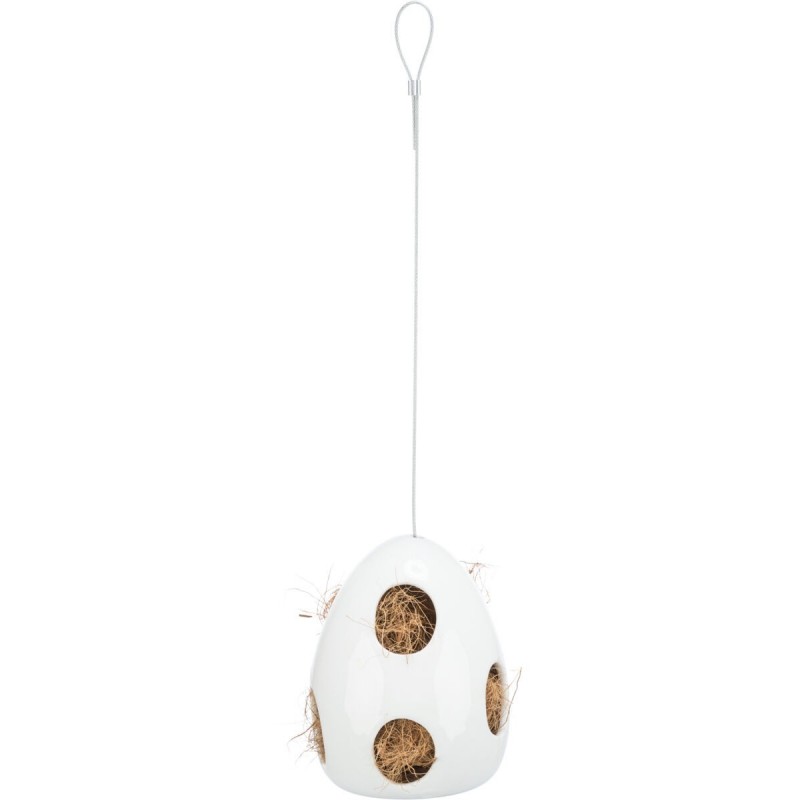 TRIXIE Podajnik na materiał gniazdowy dla ptaków o wymiarach 10,5 x 10,5 x 15 cm to praktyczne i stylowe akcesorium, idealne do zawieszenia w klatkach, volierach lub na zewnątrz. Wykonany z ceramiki i rekomendowany przez World Bird Park Walsrode, podajnik wyróżnia się ciekawym kształtem jajka oraz 7 otworami, które pozwalają ptakom wygodnie pobierać materiał gniazdowy.