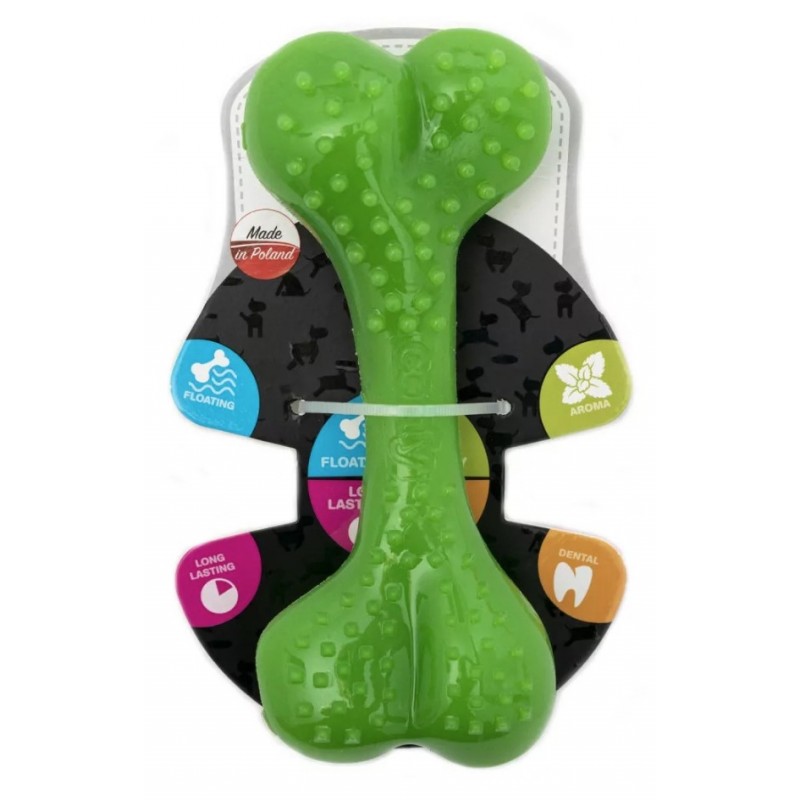Mint Dental Bone to innowacyjna zabawka dla psów w kształcie kości, wykonana z bezpiecznego dla zwierząt tworzywa TPE. Zabawka została zaprojektowana z myślą o higienie jamy ustnej, a dzięki specjalnym wypustkom delikatnie masuje dziąsła, jednocześnie pomagając w czyszczeniu zębów Twojego pupila. Dodatkowo jej miętowy zapach czyni ją jeszcze bardziej atrakcyjną dla psów. Zabawka unosi się na wodzie, co czyni ją idealnym wyborem do zabawy nie tylko w domu, ale także na spacerach i podczas wodnych przygód.