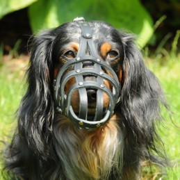 DINGO Skórzany kaganiec dla psa – Jamnik (nitowany) to precyzyjnie dopasowany kaganiec stworzony z myślą o specyficznej, wydłużonej budowie kufy jamników. Łączy trwałość naturalnych materiałów z komfortem noszenia i bezpieczeństwem podczas codziennych spacerów.