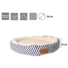 DINGO Legowisko okrągłe dla zwierząt 50 cm ZYGZAK to przytulne miejsce odpoczynku, które łączy komfort pupila z nowoczesnym stylem wnętrza. Okrągła forma sprzyja naturalnej pozycji podczas snu, a miękkie wnętrze z przyjemnego pluszu zapewnia zwierzęciu ciepło i poczucie bezpieczeństwa.
