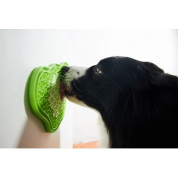 PET DREAM HOUSE Lick Pad Green Easy to innowacyjna zielona nakładka do lizania, stworzona z myślą o wspieraniu zdrowia i dobrego samopoczucia Twojego pupila. Dzięki specjalnie zaprojektowanej powierzchni, nakładka stymuluje produkcję śliny, co nie tylko pomaga w higienie jamy ustnej, ale także wspomaga trawienie. Spowalnia proces jedzenia, co jest szczególnie korzystne dla psów, które mają tendencję do szybkiego połykania pokarmu, zmniejszając ryzyko problemów trawiennych. Lizanie działa relaksująco, co pomaga redukować stres i niepokój, sprawiając, że jest to idealne rozwiązanie dla zwierząt potrzebujących wsparcia emocjonalnego.