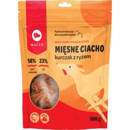 Mięsne ciacho kurczak z ryżem to przysmak, który nie tylko smakuje wyjątkowo, ale także łączy w sobie doskonałą recepturę z nowoczesną technologią produkcji. Smakowity kurczak z chrupiącym ryżem zapewniają niezapomniane doznania podczas gryzienia. To delikatna i chrupiąca przekąska, idealna jako nagroda po treningu lub wspólnym spacerze z psem. Ten smaczny dodatek doskonale uzupełnia dietę Twojego psa, dostarczając mu radości i przyjemności z jedzenia.