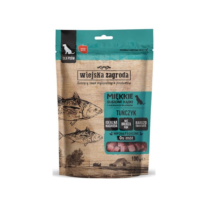 Pozwól swojemu psu poczuć aromat oceanu z przysmakami Wiejska Zagroda - Kąski Tuńczyk. Subtelnie suszone kostki to kulinarna perła, która zadowoli nawet najbardziej wymagające psie gusta. Stworzone z myślą o dobrostanie i radości Twojego psa, te przekąski łączą naturalne składniki, niezrównany smak i łatwość podawania.