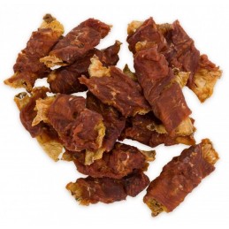 HAU MIAU Pause snack - kawałki ananasa owinięte kaczką 500g to doskonały przysmak dla Twojego psa, łączący soczyste kawałki ananasa z najwyższej jakości mięsem z kaczki. Bezglutenowe przekąski, wolne od sztucznych dodatków, barwników i konserwantów, mają miękką teksturę, która jest łatwa do żucia. Wspierają układ odpornościowy i zdrowie skóry Twojego pupila, jednocześnie pomagając w pielęgnacji zębów i dziąseł. Idealne jako nagroda, kawałki są pakowane w zamykane opakowanie, co gwarantuje długotrwałą świeżość i wygodę użytkowania.