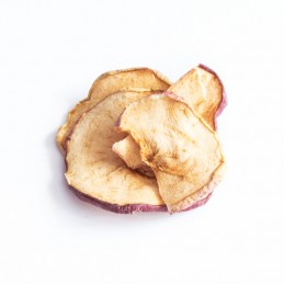 Zawiera wiele odmian witamin B, które dobrze wpływają na skórę i sierść. Dodatkowo nasze jabłko suszone jest ze skórką co wpływa na zawartość witaminy C, dzięki temu wspomaga układ odpornościowy.