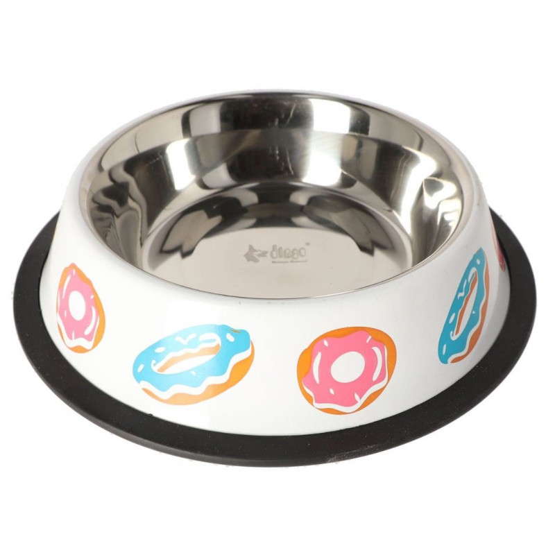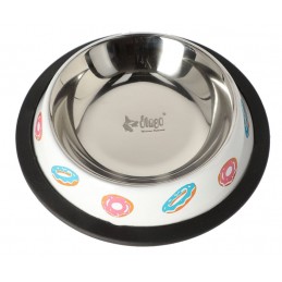 DINGO Miska metalowa na gumie w donuty to praktyczna i stylowa miska dla psa, która łączy trwałość stali nierdzewnej z komfortem użytkowania i uroczym designem. Idealna zarówno do podawania wody, jak i karmy suchej lub mokrej.