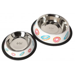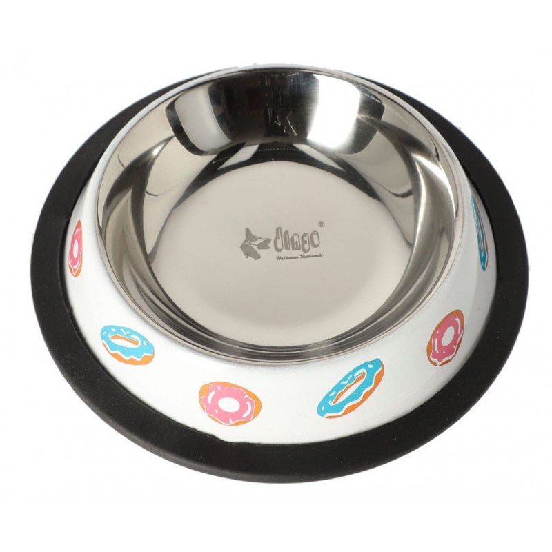 DINGO Miska metalowa na gumie w donuty to praktyczna i stylowa miska dla psa, która łączy trwałość stali nierdzewnej z komfortem użytkowania i uroczym designem. Idealna zarówno do podawania wody, jak i karmy suchej lub mokrej.