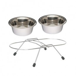Chromowany stojak z dwoma miskami ze stali nierdzewnej to idealne rozwiązanie dla opiekunów, którzy szukają połączenia estetyki z funkcjonalnością. Miski świetnie sprawdzą się do karmy i wody, zapewniając wygodę zarówno zwierzakowi, jak i właścicielowi.