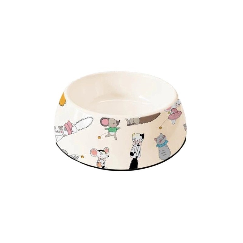 Miska dla kota Chatouille 230 ml od ZOLUX to połączenie funkcjonalności, higieny i charakterystycznego designu, który doskonale wpisuje się w koci świat. Wykonana z trwałej melaminy i ozdobiona motywem kotów oraz myszy, stanowi nie tylko praktyczne naczynie do karmienia, ale także estetyczny element domowej przestrzeni pupila.