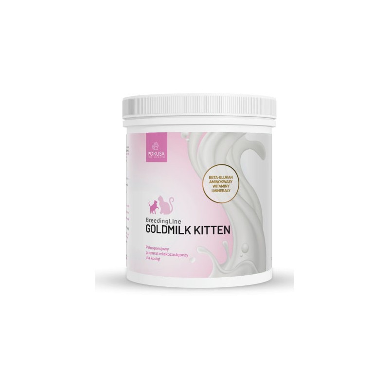 BreedingLine GoldMilk Kitten to preparat mlekozastępczy dla kociąt już od pierwszego dnia życia. Formuła bogata jest w niezbędne dla prawidłowego rozwoju kociąt aminokwasy takie jak tauryna, lizyna, i metionina. Dodatek beta-glukanów wspomaga układ odpornościowy, a zawarte w preparacie składniki mineralno-witaminowe wspierają rozwój układu kostnego, pazurów i uzębienia. Produkt idealnie zastępuje mleko kotki i zaspokaja wszystkie potrzeby żywieniowe dorastających kociąt, dostarczając organizmowi lekkostrawnego białka i łatwo przyswajalnego tłuszczu. Ponadto podawanie preparatu mlekozastępczego matkom karmiącym pomaga zwiększyć produkcję ich własnego mleka.