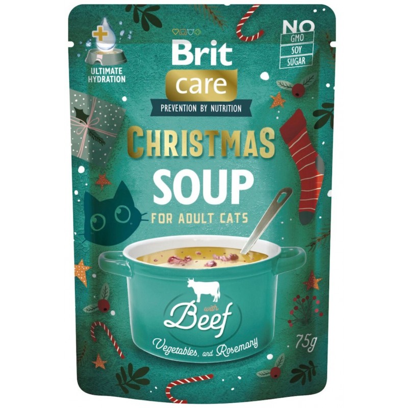 Dzięki starannie dobranej, lekkiej i wysoko nawilżającej formule Brit Care Cat Christmas Soup Beef wspiera trawienie, poprawia nawodnienie i dostarcza kotu aromatycznego, mięsnego smaku, który kojarzy się z wyjątkowym, świątecznym posiłkiem. To idealna propozycja dla opiekunów, którzy chcą podać swojemu kotu coś delikatnego, naturalnego i wartościowego – posiłek, który łączy smak kojarzący się ze świętami z troską o zdrowie i dobre samopoczucie pupila, zamknięty w praktycznej saszetce 75 g.
