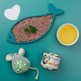 FAMILY FIRST Danie z Dorszem to aromatyczna i zbilansowana propozycja dla dorosłych kotów, która wspiera zdrowie serca, sprawność umysłową oraz piękną kondycję. To codzienny, pełnowartościowy posiłek zamknięty w wygodnej puszce 200 g.