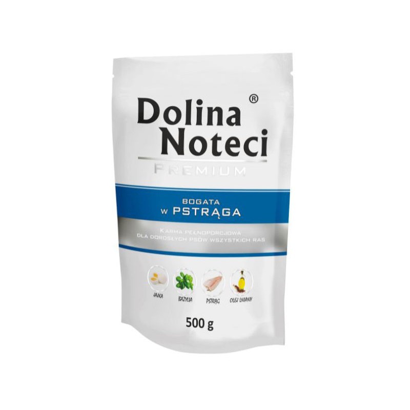 Karma jest bogactwo pstrąga, który dostarcza cennych kwasów omega-3, znanych ze swojego pozytywnego wpływu na serce i układ krążenia. Dzięki zawartości nienasyconych kwasów tłuszczowych, w tym kwasów EPA i DHA, DOLINA NOTECI Premium wspiera zdrowie i witalność Twojego psa.