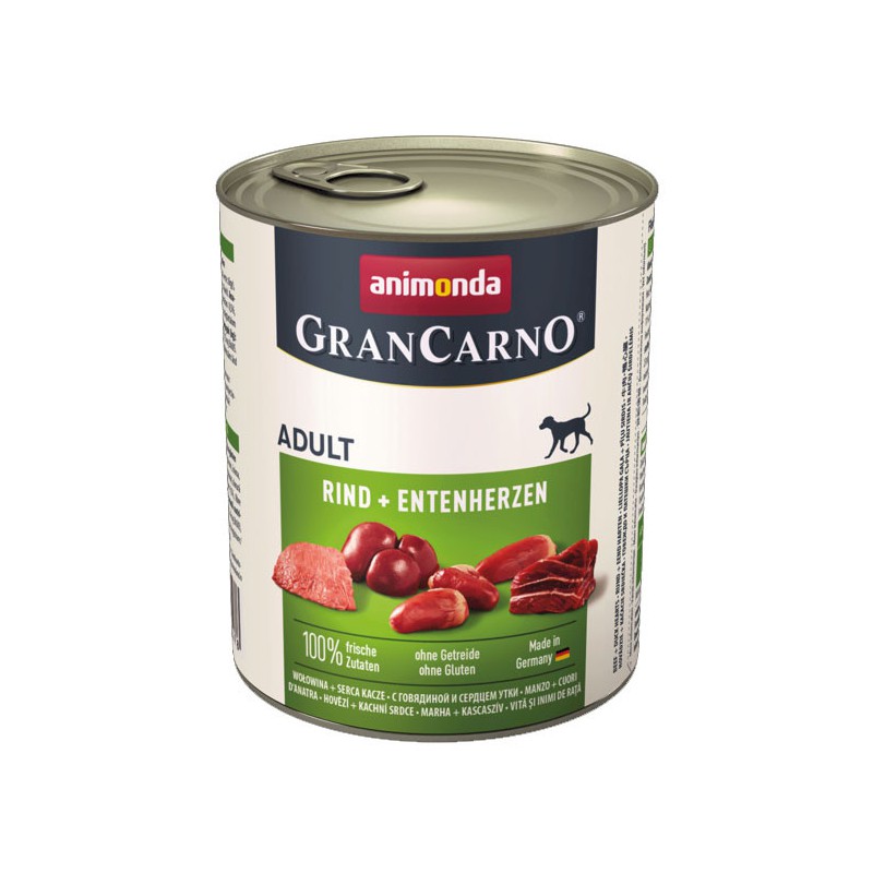 Animonda GranCarno Adult Dog wołowina z kaczymi sercami to pełnoporcjowa karma mokra dla dorosłych psów wszystkich ras.