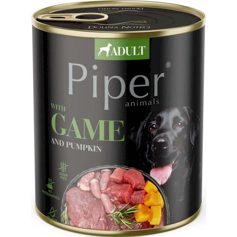 DOLINA NOTECI PIPER Dziczyzna z dynią to pełnoporcjowa karma mokra dla dorosłych psów wszystkich ras, która łączy wartości odżywcze dziczyzny z funkcjonalnym wsparciem trawienia i odporności. Starannie opracowana receptura dostarcza wszystkiego, co niezbędne do utrzymania zdrowia i dobrej kondycji pupila.