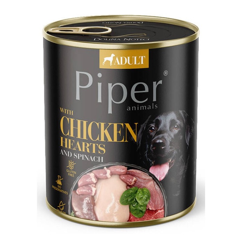 DOLINA NOTECI PIPER Serca kurczaka ze szpinakiem to doskonały wybór dla opiekunów, którzy cenią naturalne i zbilansowane żywienie.
