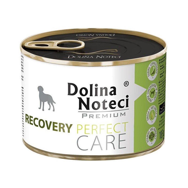 DOLINA NOTECI Perfect Care Recovery to mokra karma stworzona z myślą o psach potrzebujących wsparcia w okresie rekonwalescencji, po zabiegach operacyjnych oraz dla psów z osłabionym apetytem. Jej unikalna receptura charakteryzuje się odpowiednią koncentracją energii (8% olejów i tłuszczów) oraz składników odżywczych, które pomagają przywrócić formę osłabionemu organizmowi.