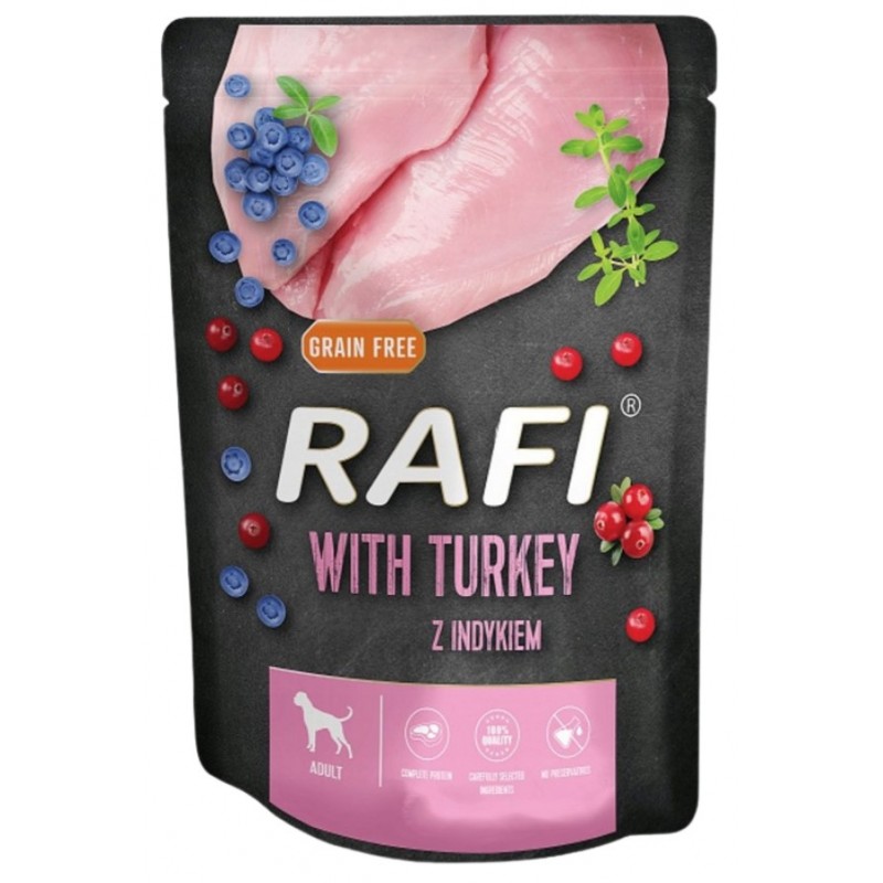 DOLINA NOTECI RAFI - Indyk, Borówki, Żurawina to nie tylko pyszny posiłek, ale także zdrowa i zbilansowana karma, która wspiera zdrowie i dobre samopoczucie Twojego psa. Dzięki starannie dobranym składnikom, Twój pupil będzie cieszył się zdrowiem, witalnością i pełnią energii każdego dnia.