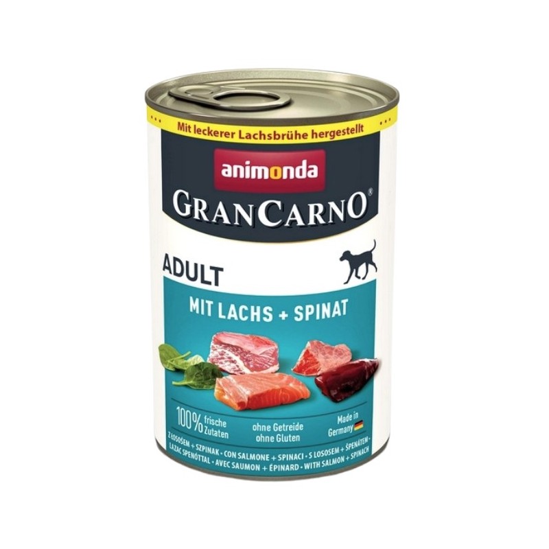 ANIMONDA GranCarno Adult Łosoś ze Szpinakiem to wyjątkowa karma dla dorosłych psów, która łączy w sobie najlepsze, świeże składniki, aby zapewnić Twojemu psu zdrowie i doskonałe samopoczucie. Ta pełnowartościowa karma mokra zawiera aż 52% mięsa, zapewniając wysokiej jakości białko, niezbędne dla utrzymania optymalnej kondycji fizycznej i zdrowia Twojego psa.