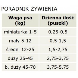Każdy pies ma różne potrzeby. Optymalne ilości karmienia różnią się znacznie w zależności od takich czynników, jak wiek, aktywność, metabolizm i warunki środowiskowe. Jako punkt wyjścia proponujemy rozpocząć w dolnej wartości naszego przewodnika i dostosować odpowiednio do potrzeb.