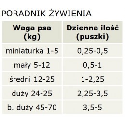 Każdy pies ma różne potrzeby. Optymalne ilości karmienia różnią się znacznie w zależności od takich czynników, jak wiek, aktywność, metabolizm i warunki środowiskowe. Jako punkt wyjścia proponujemy rozpocząć w dolnej wartości naszego przewodnika i dostosować odpowiednio do potrzeb.