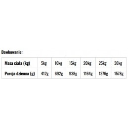 Posiłki należy podawać w temperaturze pokojowej, w jednej lub dwóch porcjach dziennie. Pamiętaj, aby zapewnić psu stały dostęp do świeżej wody.