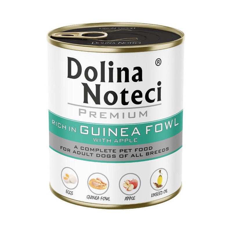 DOLINA NOTECI PIES PREMIUM Perliczka z jabłkiem 800g to pełnowartościowa mokra karma, stworzona z myślą o zaspokojeniu potrzeb żywieniowych każdego psa, niezależnie od jego wieku czy rasy. Skład oparty na perliczce dostarcza psu wysokiej jakości białka, które wspomaga rozwój i regenerację mięśni, a jednocześnie jest lekkostrawne i niskokaloryczne, idealne dla psów dbających o linię. Jabłko, dodane do karmy, wzbogaca ją o naturalne źródło witamin, minerałów oraz beta-karotenu, które wspomagają układ odpornościowy, poprawiają stan skóry i sierści oraz działają antyoksydacyjnie.