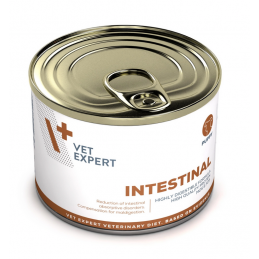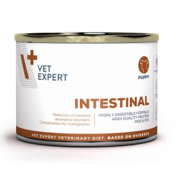 VETEXPERT 4T Vet. Diet Intestinal Puppy 200 g to specjalistyczna karma dietetyczna dla szczeniąt, opracowana w celu wsparcia układu pokarmowego, wyrównania zaburzeń trawienia i poprawy wchłaniania jelitowego. Dzięki obniżonej zawartości tłuszczu dieta sprawdzi się również jako wsparcie przy problemach z trzustką, zapewniając jednocześnie pełnowartościowe żywienie w kluczowym okresie wzrostu.