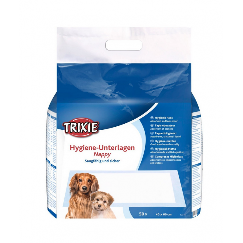 TRIXIE Mata/Podkład higieniczny dla szczeniąt o wymiarach 40 × 60 cm dostępny w opakowaniach po 50 sztuk, to idealne rozwiązanie wspomagające proces nauki czystości u najmłodszych czworonogów. Produkt sprawdzi się również jako dodatkowa ochrona legowisk dla psów borykających się z problemem nietrzymania moczu, gwarantując im suchość i komfort.