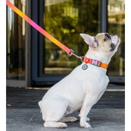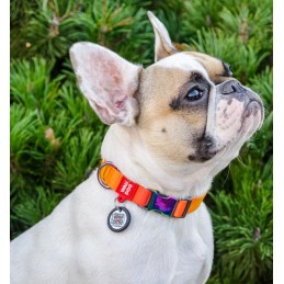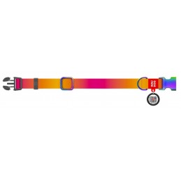 Obroża wykonana z innowacyjnego materiału R-PET, pochodzącego z recyklingu, łączy w sobie trwałość, wygodę i nowoczesny design w odcieniach pomarańczowego gradientu. Powłoka tytanowa zapewnia wysoką odporność na zużycie, a unikalna metalowa klamra gwarantuje pewne zapięcie. Dodatkowo, obroża wyposażona jest w inteligentną adresówkę z QR-paszportem, która umożliwia szybkie zidentyfikowanie pupila w razie zgubienia.