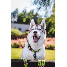 Obroża została wykonana z wysokiej jakości taśmy z recyklingu (rPET), powstałej z przetworzonych butelek plastikowych. Materiał jest nie tylko ekologiczny, ale również wyjątkowo wytrzymały i odporny na przetarcia.