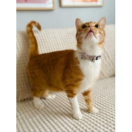 - Elegancka muszka w kolorze beżowym – klasyczny, uniwersalny akcent podkreślający urok kota