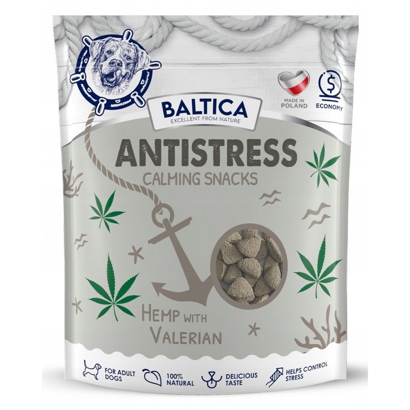 BALTICA EXCELLENT Functional Snack Antistress to funkcjonalna przekąska stworzona z myślą o psach, które potrzebują wsparcia w radzeniu sobie ze stresem i napięciem. Bogata w naturalne składniki o właściwościach uspokajających, takich jak zioła i wyselekcjonowane substancje odżywcze, pomaga w łagodzeniu stresu i poprawie samopoczucia psa w trudnych sytuacjach, takich jak podróże, wizyty u weterynarza czy zmiany w otoczeniu. Przekąska wspomaga również układ nerwowy, wspierając równowagę emocjonalną czworonoga, a jej smakowita formuła sprawia, że jest idealnym dodatkiem do codziennej diety.