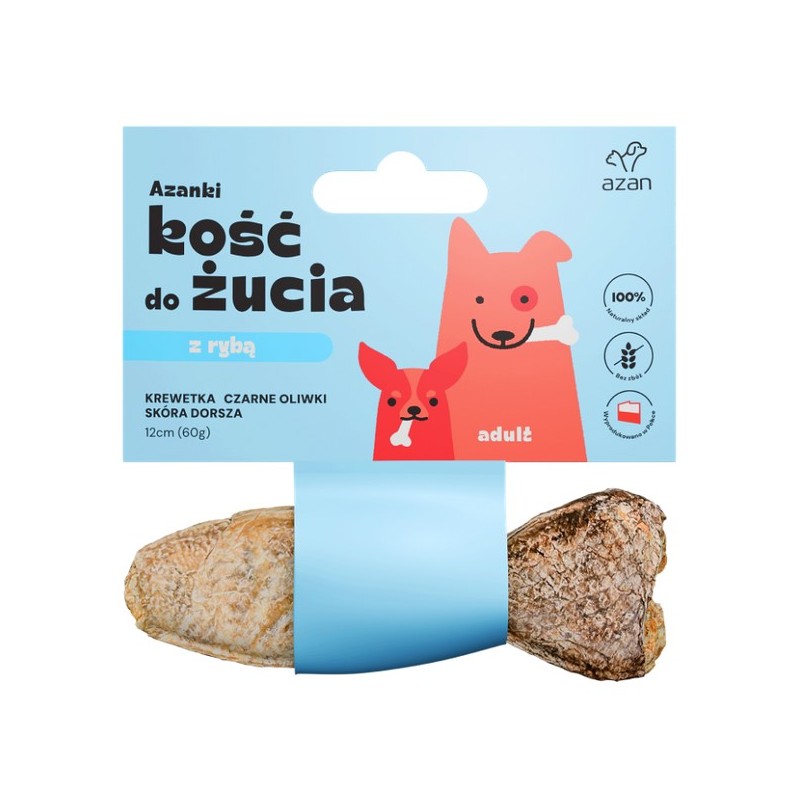 AZANKI Kość do Żucia z Krewetką i Czarnymi Oliwkami w Skórze Dorsza to wyrafinowany przysmak, stworzony specjalnie dla psów wszystkich ras. Ta karma uzupełniająca łączy w sobie najwyższej jakości składniki, aby dostarczyć Twojemu psu zdrowe i smaczne doznania podczas żucia.