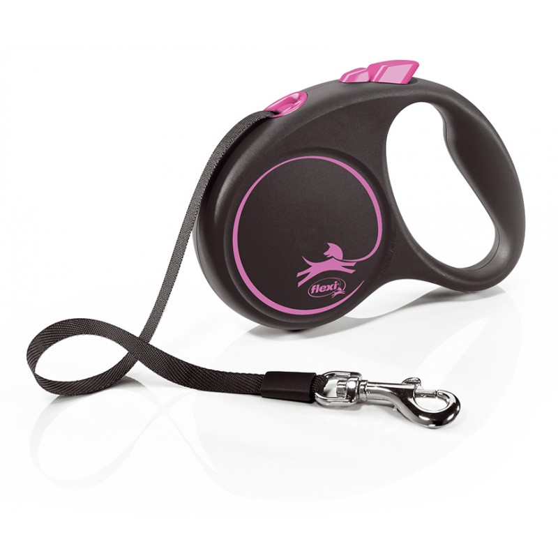FLEXI Smycz automatyczna Black Design S taśma 5 m do 15kg - Różowa