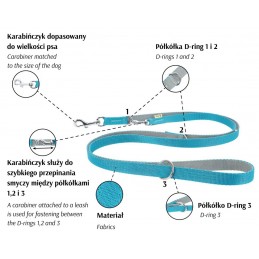 - Trzystopniowa regulacja długości – 120, 160 i 220 cm – pozwala dostosować smycz do aktualnych potrzeb