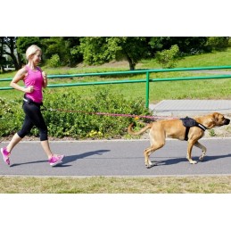 Smycz z amortyzatorem i uchwytem idealnie nadaje się do takich sportów jak dogtrekking, canicross, skijoring, jazda na rolkach lub rowerze. Na rączce zamontowane kółko do przyczepiania pasa do biegania.