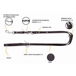 Smycz została wyprodukowana w polskim zakładzie – ręczne wykończenie i dbałość o każdy detal sprawiają, że posłuży przez długie lata. Solidne, nierdzewne nity oraz chromowany karabińczyk gwarantują niezawodność, bezpieczeństwo i odporność na rdzę.