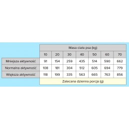 Rzeczywiste zapotrzebowanie na karmę może się różnić w zależności od poziomu aktywności i ogólnej kondycji zwierzaka. Obserwuj swojego pupila i w razie potrzeby zmniejsz lub zwiększ podawaną dzienną ilość karmy. Pamiętaj o tym, aby zapewnić mu stały dostęp do świeżej wody!