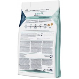 HAPPY DOG Sano N jest precyzyjnie opracowaną suchą karmą, stworzoną z myślą o psach walczących z problemami nerkowymi. Karma zawiera wyłącznie składniki najwyższej jakości i jest specjalnie dostosowana, aby poprzez zredukowaną zawartość białka wspierać zdrowie nerek, co jest istotne dla psów cierpiących na tego rodzaju dolegliwości.