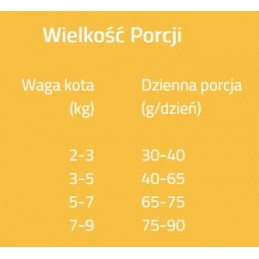 Karmę podawać na sucho lub zwilżoną letnią wodą. Zawsze upewnij się, czy Twój kot ma wystarczającą ilość świeżej wody pitnej. Należy zapewnić kotu stały dostęp do świeżej wody. Jeżeli dajesz karmę po raz pierwszy, zmieszaj ją z poprzednią karmą, aby ułatwić przejście na nową.