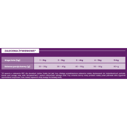 - Białko surowe 44,5%, Tłuszcz surowy 12,5%, Włókno surowe 4%, Popiół surowy 10%, Wilgotność 5%, Bezazotowe związki wyciągowe (NFE) 24%, Kwasy tłuszczowe omega-6 1,8%, Kwasy tłuszczowe omega-3 1,6%, Wapń 1,9%, Fosfor 1,6%