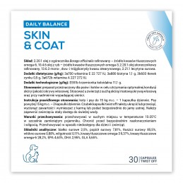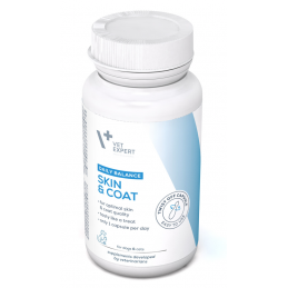 VETEXPERT Skin and Coat to innowacyjny preparat stworzony, aby zadbać o kondycję skóry i jakość sierści Twojego pupila. Dzięki starannie dobranym składnikom, wspiera regenerację suchej skóry, przywraca blask matowej sierści oraz ogranicza nadmierne wypadanie włosów. Idealny dla psów i kotów, które potrzebują dodatkowej pielęgnacji i wsparcia w poprawie wyglądu ich okrywy włosowej.