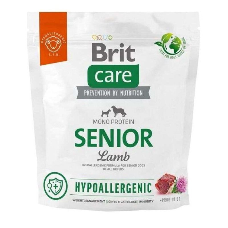 Karma Brit Care Senior z jagnięciną i ryżem to kompletna dieta, stworzona z myślą o seniorach wśród psów, bez względu na ich rasę, które osiągnęły wiek powyżej 7 lat. Hipoalergiczna formuła opiera się na dwóch głównych składnikach: jagnięcinie i ryżu, co sprawia, że jest to idealne rozwiązanie dla psów podatnych na alergie pokarmowe, zwłaszcza te z problemami trawiennymi i skórnymi.