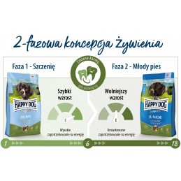 HAPPY DOG Sensible Junior Lamb & Rice jest starannie zaplanowaną suchą karmą, stworzoną z myślą o rosnących psach ras średnich i dużych, odpowiednią dla nich w wieku od 7. do 18. miesiąca. Składająca się z jagnięciny i ryżu, formuła jest doskonale przystosowana do zaspokajania potrzeb szczeniąt z wrażliwym układem pokarmowym, oferując łatwo przyswajalne, bezglutenowe żywienie najwyższej jakości.